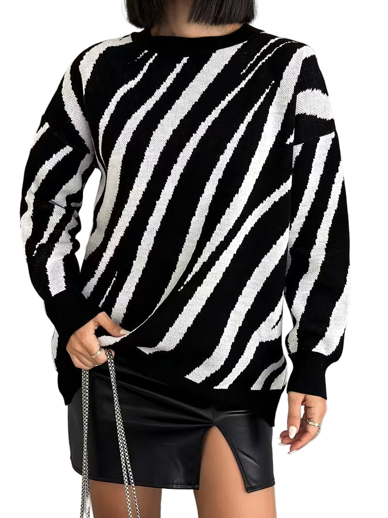 Męski Sweter w Kratę z Okrągłym Dekoltem