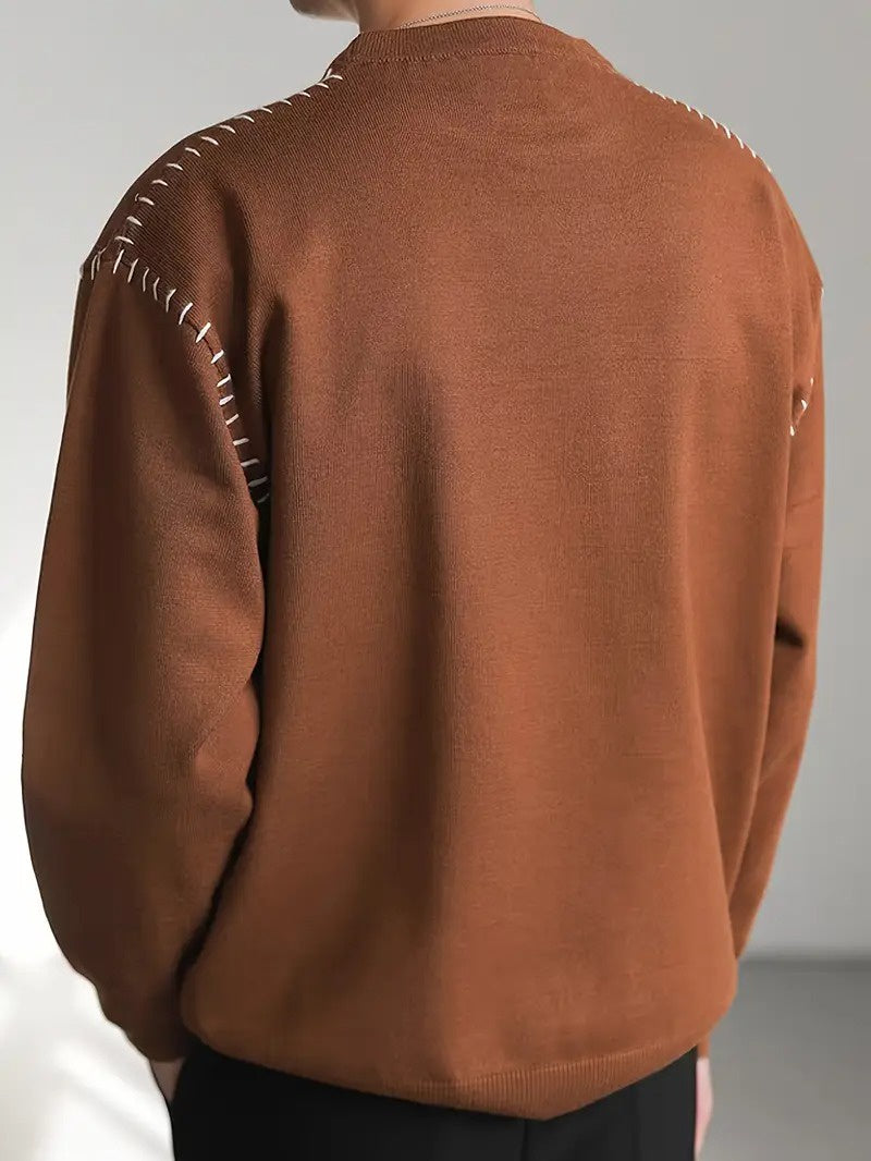 Męski Sweter z Okrągłym Dekoltem i Kontrastowym Szyciem
