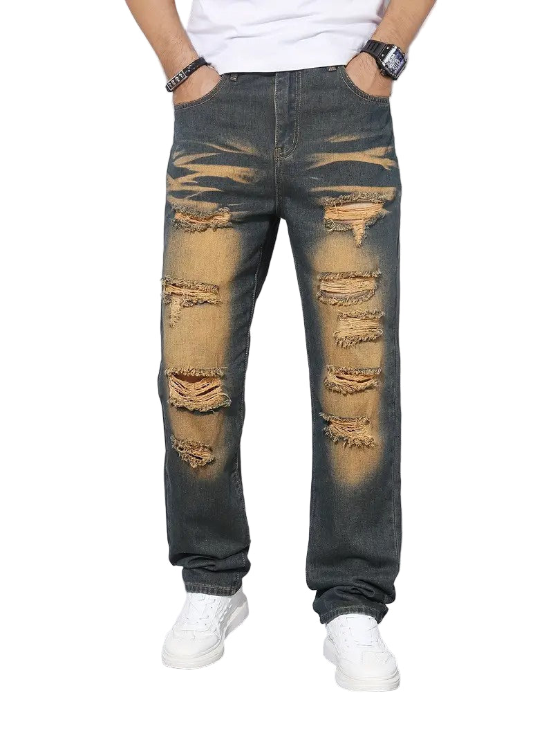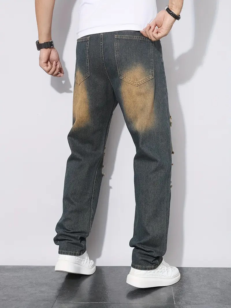 Męskie Spodnie z Rozdarciami i Wypłowieniami