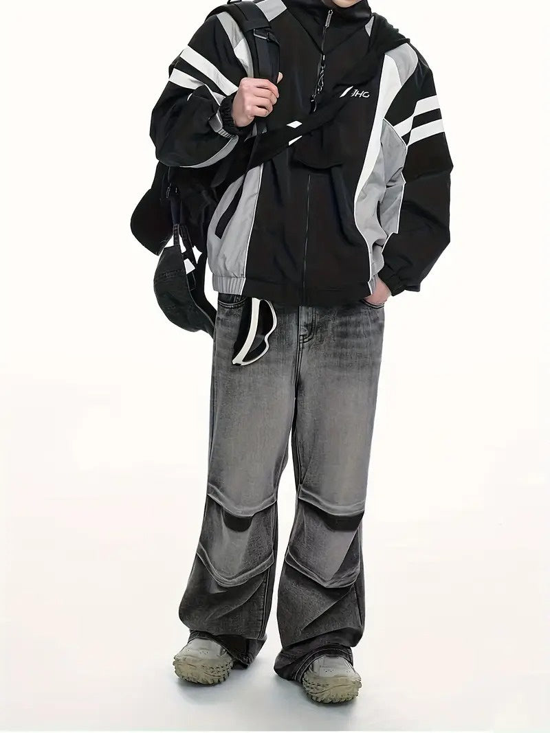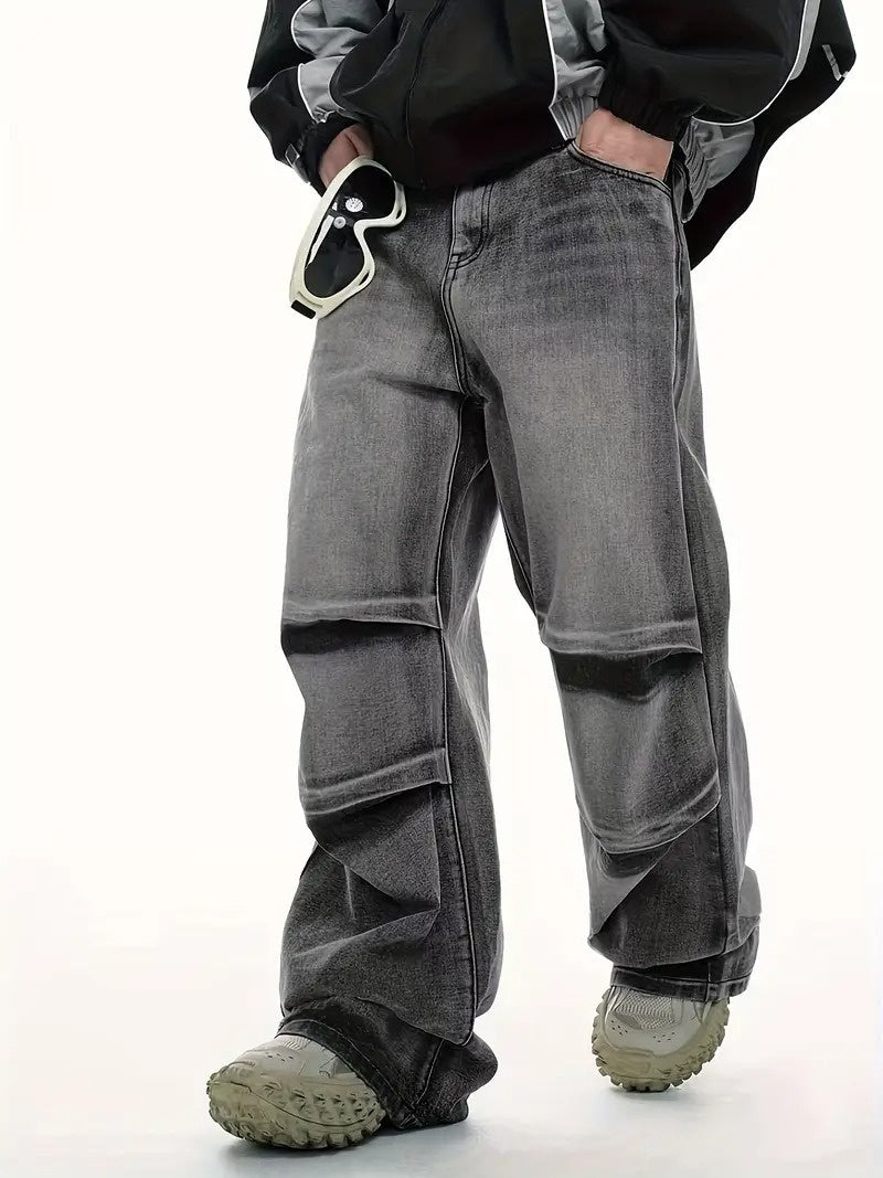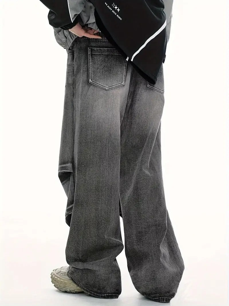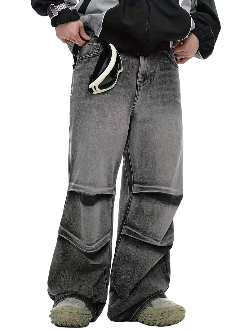 Te męskie spodnie mają szerokie nogawki na całej długości. Z tyłu znajdują się prostokątne kieszenie umieszczone po obu stronach w pobliżu pasa. Z przodu spodnie mają kieszenie po bokach.